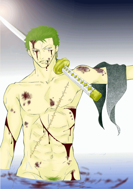 一目見て、「○○毛○○毛!」と騒いだ馬鹿者です。(白状) まったくの不届きモノで申し訳ありませんm(_ _)m がしかし!叫ばずにはいられないでしょうvv まさに清濁、 ゾロを表す言葉としてはあまりに簡潔にして的確vv 素晴らしい〜vv 血塗れでも傷だらけでも、 ゾロはひたすら前に進むのですね。 時に、その身体を洗う清水になりたい、私が!(台無し) 日夏っちゃん、ゾロ誕開催おめでとう〜v そして素敵DLFありがとう〜〜〜!!