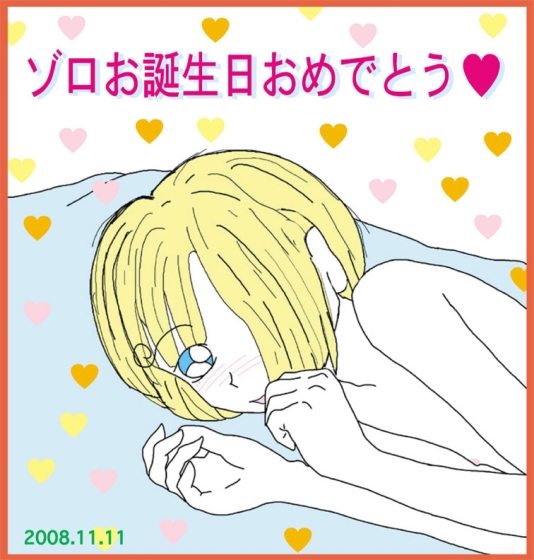 うっわあ! ゾロにとって最高のプレゼントじゃないですか! これはもう、心行くまで食していただきたいv 骨の髄までサンジ堪能プレゼントー!! ゾロすんげえ悦びますよ!(私も大喜びv) さ〜やちゃん、ありがとうございます!!