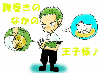 かーわいい親指王子と、可愛いゾロをいただいてしまいました! いーやーゾロはこうやってサンジを可愛がってるんだなあ。 もうほっこりv 温めたらなにか生まれそうな勢いです(笑) 可愛い可愛い親指王子と従者ゾロを、ありがとうございます!
